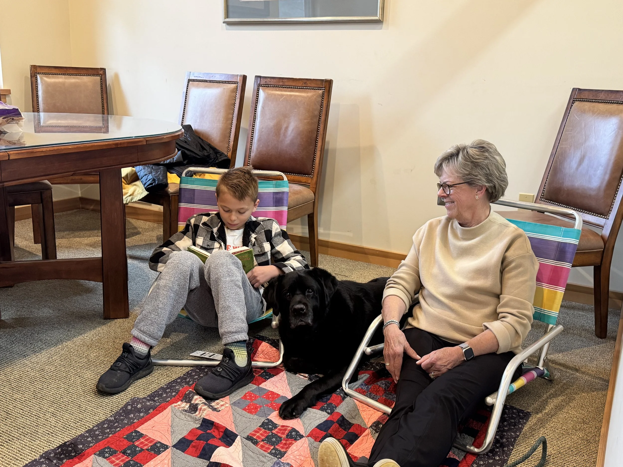 Did you know that reading to dogs - or any support animal - can help children improve their literacy skills? That’s right! In an interview with Scholastic, Dr. Linda C. Mayes, a developmental pediatrician at the Yale School of Medicine, said reading to a pet can help young readers develop fluency and increase their confidence in a calming environment. No pets? No problem! The Ellicottville Memorial Library is pleased to host therapy dog, Gilley and his owner/handler, Martha Brown on Saturday, November 22nd from 10:00-11:00am, when young readers are invited to come in and read to this lovable Labrador Retriever!